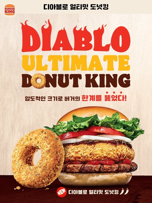 디아블로 얼티밋 도넛킹이 출시되었습니다. 압도적인 크기라고 선전하는데, 세로로 높아서 그런 것 같아요. 여기 들어가는 치킨 패티의 두께가 상당하거든요.